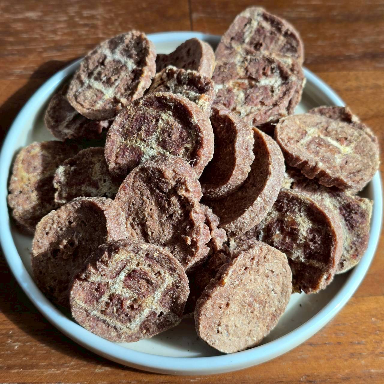 馬肉のチップスです。高たんぱく低脂質、低アレルゲンなので、鶏や豚のアレルギーがあるワンちゃんに人気の商品です。