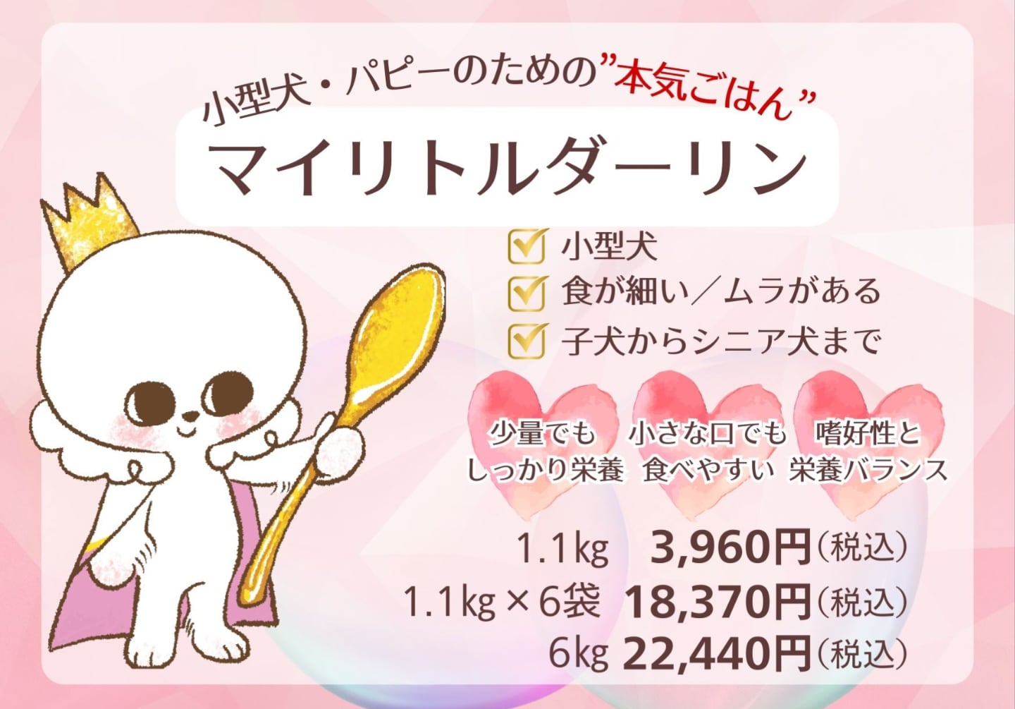 食の細い小型犬でもしっかり栄養が摂れる高栄養フード。