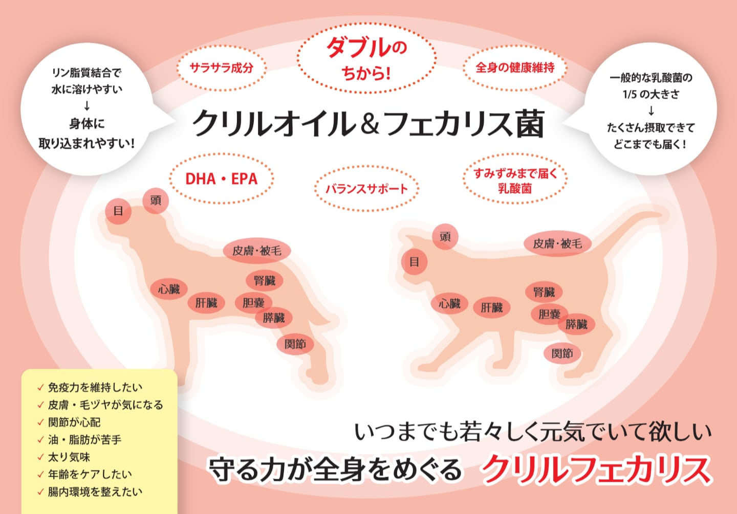 ■高吸収性オメガ3脂肪酸オイル[クリルオイル]&高密度濃縮乳酸菌[フェカリス菌]