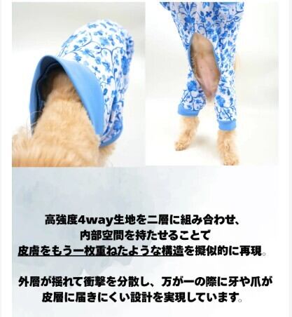 タイブランド DOGGY SIAM が開発した保護ウェアで、2層構造の特殊生地で犬の皮膚を模した設計。