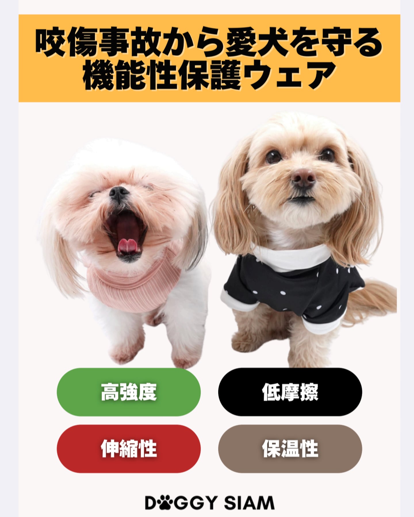 タイブランド DOGGY SIAM が開発した保護ウェアで、2層構造の特殊生地で犬の皮膚を模した設計。