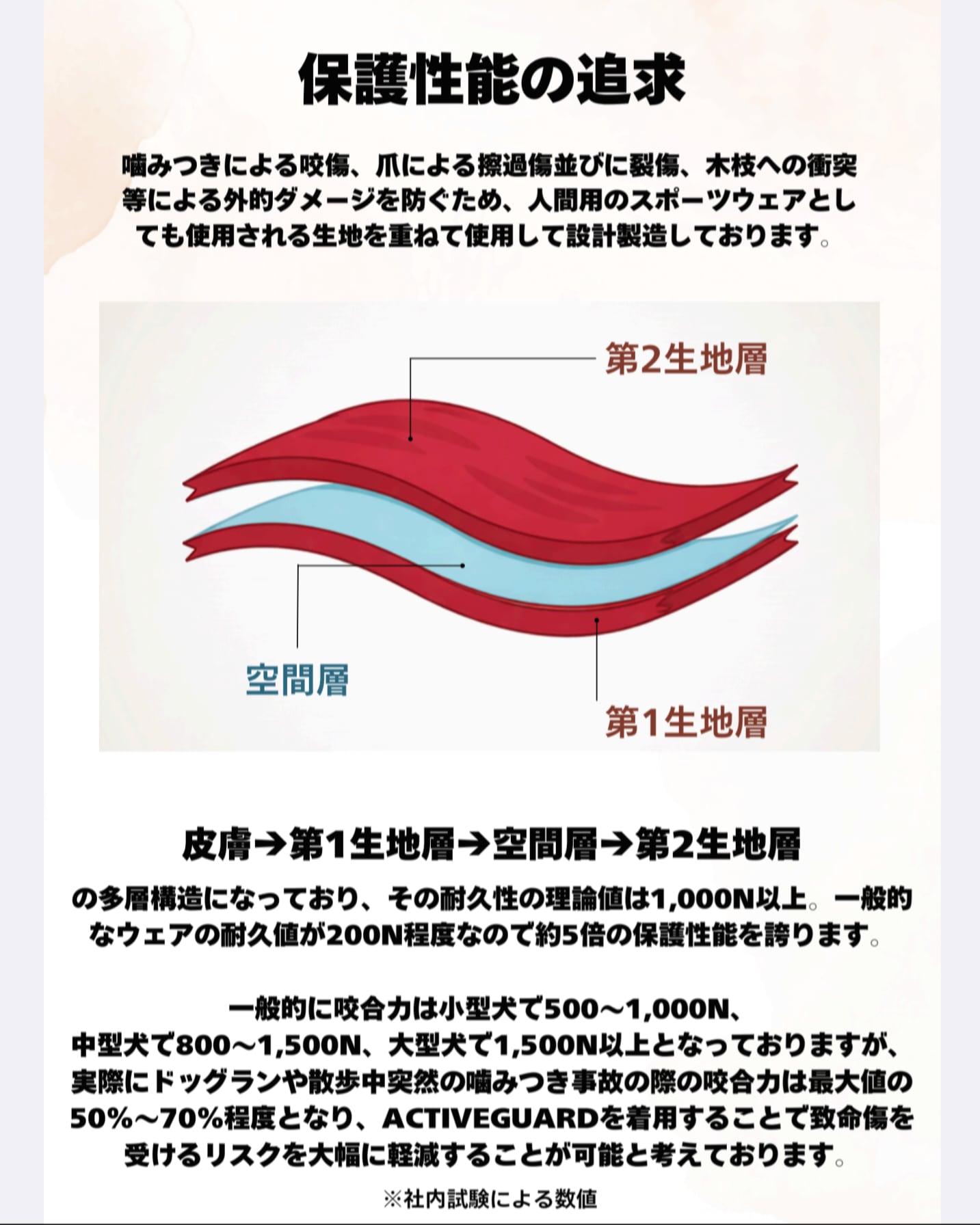 ・犬の皮膚を模した2層構造生地
